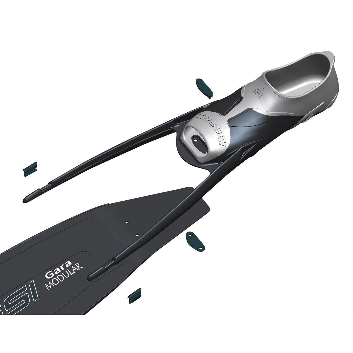 Sæt til Gara modular finner. Designetn gør det muligt for brugeren at udskifte blade til specifikke dykkeformål. En ideel finne til at udvikle dig med, da bladene kan udskiftes, når du bliver bedre.