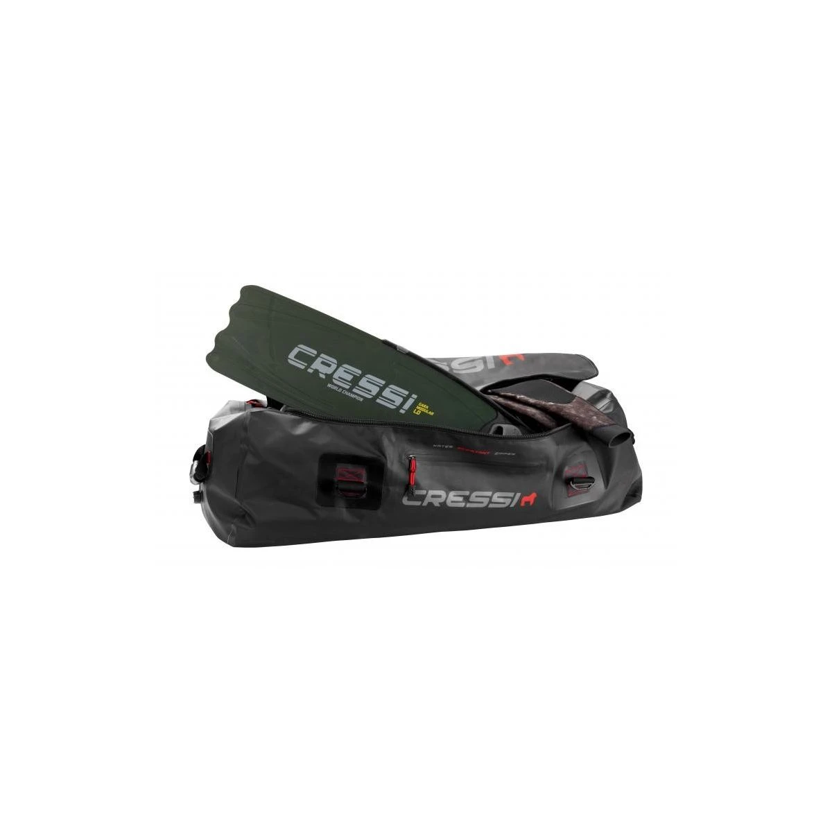 Tasken er lang nok til at indeholde selv de lange fridykkerfinner. Den er lavet af en stærk radiofrekvens (RF) svejset PVC og er vandtæt.