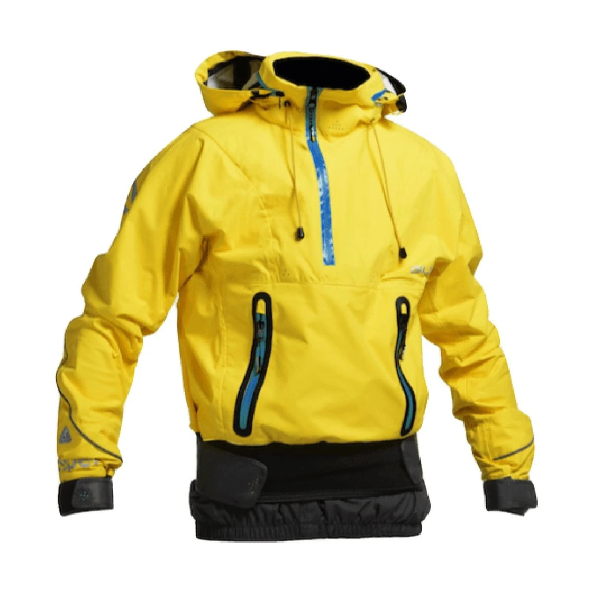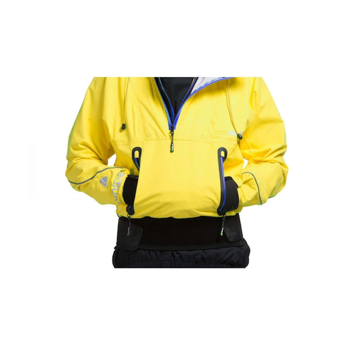 Vandtæt og åndbar spraytop med lækker fleecekrave, hætte og neopren manchetter i halsen og super vandtætte latex manchetter i håndled. Tunnel med velcro justering. Jakken har brystlommer med vandtæt lynlås