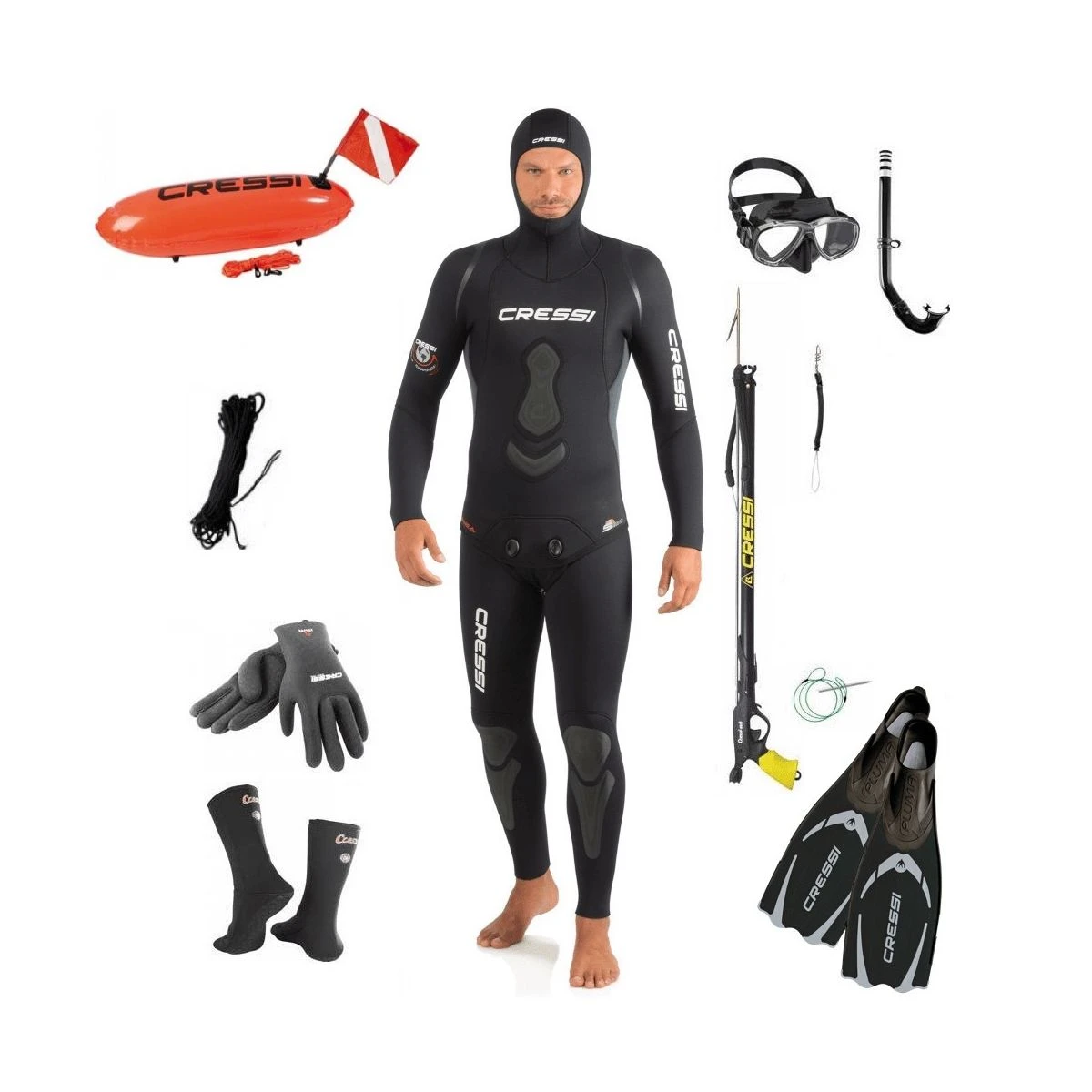 Denne komplette begynderpakke indeholder alt udstyr til undervandsjagt. I pakken får du slidstærke produkter, som gør at du jage hele året rundt. Du vil få uforglemmelige UV-jagt oplevelser de næste mange år. Med denne pakke er du klar til at fange din aftensmad. Pakken er sammensat af seriøse kvalitetsprodukter fra verdens bedste uv jagt / dykker producent Cressi fra Italien. De fleste varer er produceret i Italien på deres fabrik og produkterne ligger dejlig langt fra kinesiske produkter med lav kvalitet og holdbarhed.